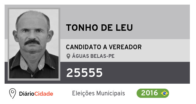 Candidato do DEM para Vereador, Tonho de Leu obteve 0 votos mas não foi eleito Vereador em Águas Belas nas Eleições 2016.