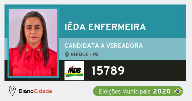 Candidata do MDB para Vereador, Iêda Enfermeira obteve 149 votos e está como Suplente Vereador em Buíque nas Eleições 2020.