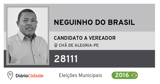 Candidato do PRTB para Vereador, Neguinho do Brasil obteve 23 votos mas não foi eleito Vereador em Chã de Alegria nas Eleições 2016.