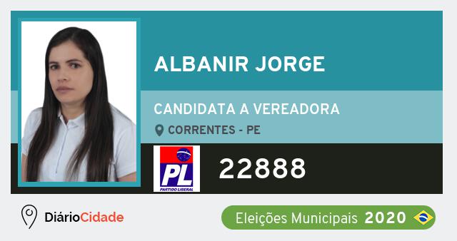 Candidata do PL para Vereador, Albanir Jorge obteve 59 votos e está como Suplente Vereador em Correntes nas Eleições 2020.