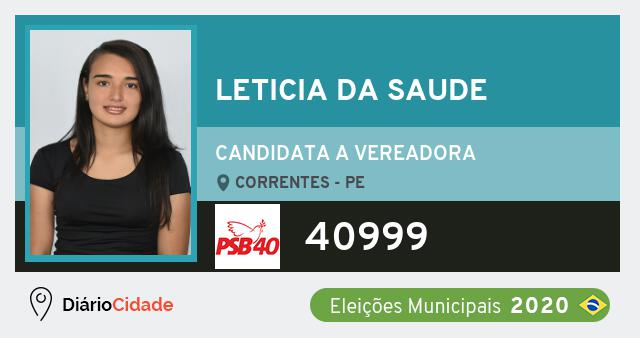 Candidata do PSB para Vereador, Leticia da Saude obteve 52 votos e está como Suplente Vereador em Correntes nas Eleições 2020.