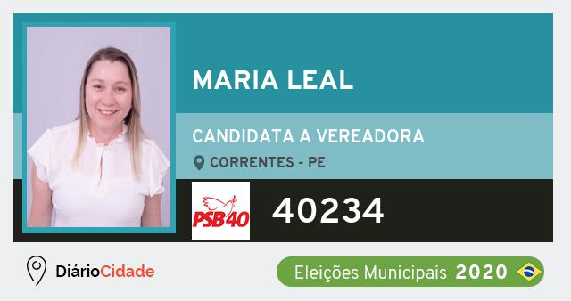 Maria Leal foi candidato a Vereador em Correntes (PE) pelo PSB nas Eleições 2020