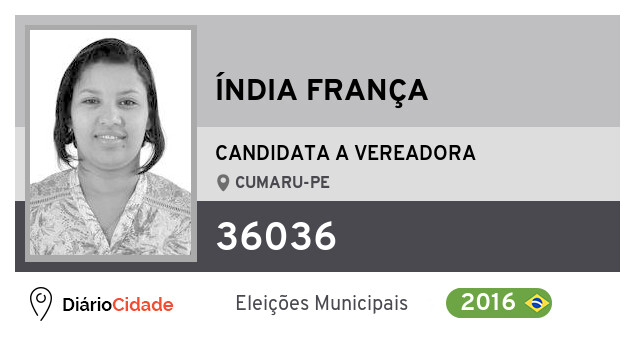 Candidata do PTC para Vereador, Índia França obteve 8 votos mas não foi eleito Vereador em Cumaru nas Eleições 2016.