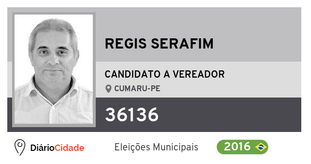 Candidato do PTC para Vereador, Regis Serafim obteve 60 votos mas não foi eleito Vereador em Cumaru nas Eleições 2016.