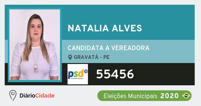 Candidata do PSD para Vereador, Natalia Alves obteve 19 votos e está como Vereador em Gravatá nas Eleições 2020.