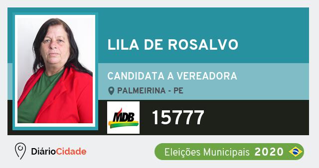 Candidata do MDB para Vereador, Lila de Rosalvo obteve 28 votos e está como Suplente Vereador em Palmeirina nas Eleições 2020.