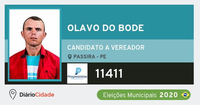 Candidato do PP para Vereador, Olavo do Bode obteve 217 votos e está como Suplente Vereador em Passira nas Eleições 2020.