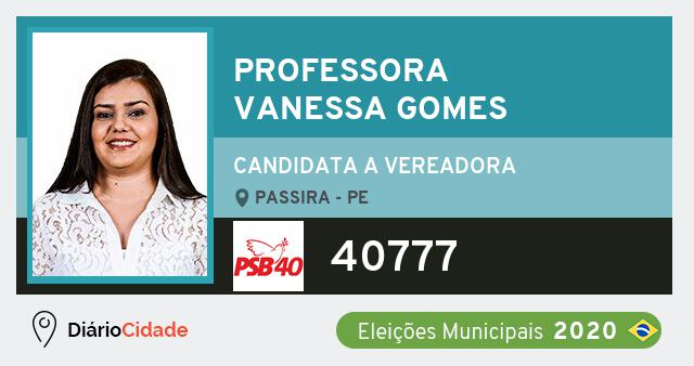 Candidata do PSB para Vereador, Professora Vanessa Gomes obteve 469 votos e está como Suplente Vereador em Passira nas Eleições 2020.