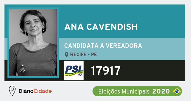 Candidata do PSL para Vereador, Ana Cavendish obteve 135 votos e está como Suplente Vereador em Recife nas Eleições 2020.