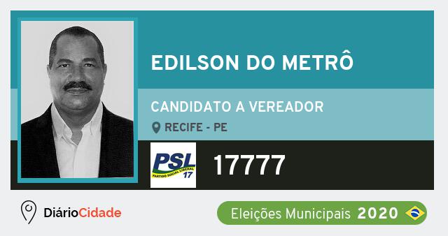 Candidato do PSL para Vereador, Edilson do Metrô obteve 1945 votos e está como Suplente Vereador em Recife nas Eleições 2020.