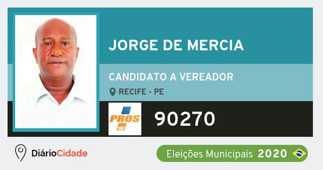 Candidato do PROS para Vereador, Jorge de Mercia obteve 57 votos e está como Suplente Vereador em Recife nas Eleições 2020.