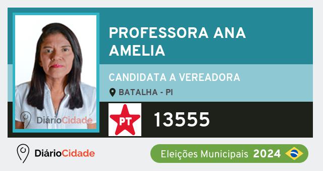 Professora Ana Amelia é candidata a Vereador em Batalha-PI nas Eleições 2024 pelo PT (Partido Dos Trabalhadores). Natural de Batalha - PI, Ana Amelia da Silva tem 61 anos de idade.