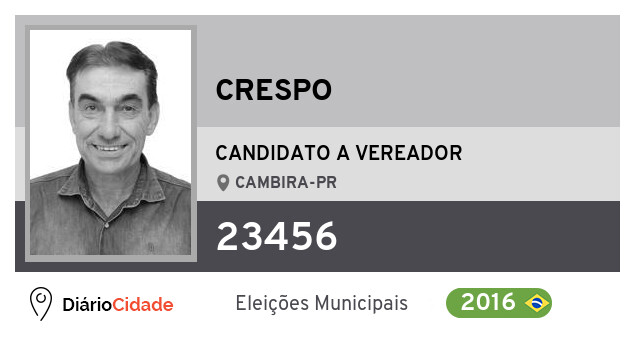 Candidato do PPS para Vereador, Crespo obteve 187 votos mas não foi eleito Vereador em Cambira nas Eleições 2016.