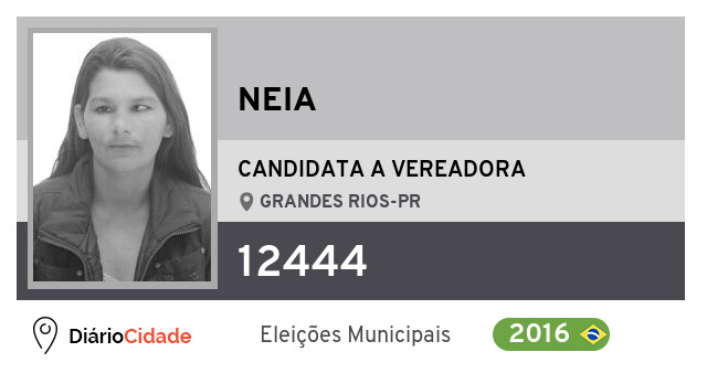 Candidata do PDT para Vereador, Neia obteve 13 votos mas não foi eleito Vereador em Grandes Rios nas Eleições 2016.