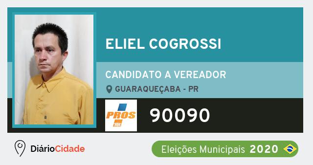 Candidato do PROS para Vereador, Eliel Cogrossi obteve 8 votos e está como Suplente Vereador em Guaraqueçaba nas Eleições 2020.