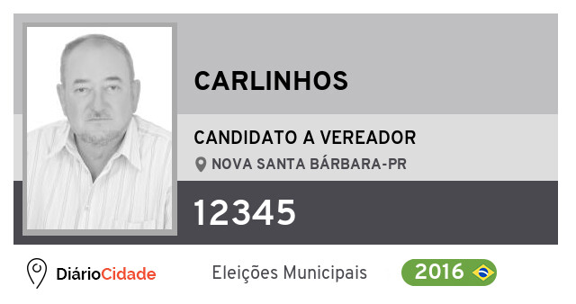 Candidato do PDT para Vereador, Carlinhos obteve 166 votos e foi eleito Vereador em Nova Santa Bárbara nas Eleições 2016.