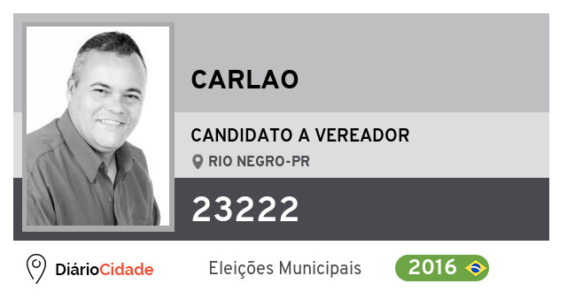 Candidato do PPS para Vereador, Carlao obteve 46 votos mas não foi eleito Vereador em Rio Negro nas Eleições 2016.