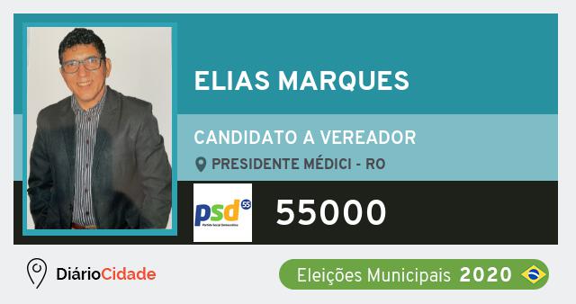 Candidato do PSD para Vereador, Elias Marques obteve 20 votos e está como Suplente Vereador em Presidente Médici nas Eleições 2020.