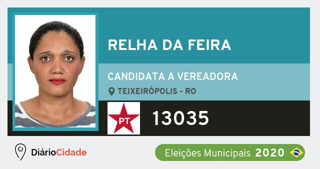 Candidata do PT para Vereador, Relha da Feira obteve 3 votos e está como Suplente Vereador em Teixeirópolis nas Eleições 2020.