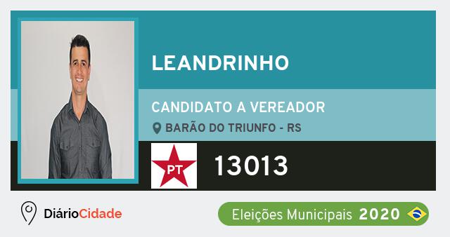 Candidato do PT para Vereador, Leandrinho obteve 25 votos mas não foi eleito Vereador em Barão do Triunfo nas Eleições 2020.