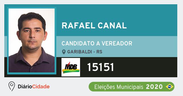 Candidato do MDB para Vereador, Rafael Canal obteve 24 votos e está como Suplente Vereador em Garibaldi nas Eleições 2020.
