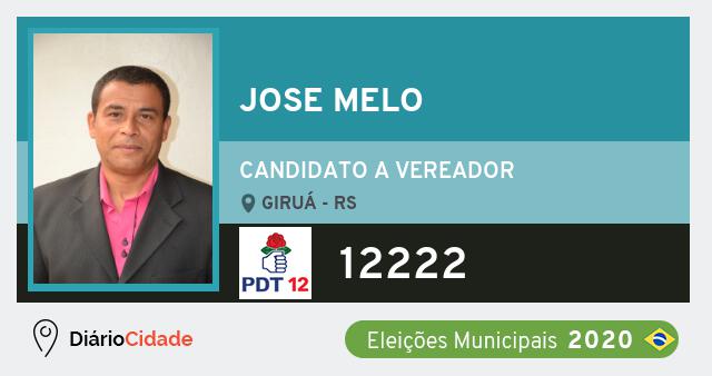 Candidato do PDT para Vereador, Jose Melo obteve 10 votos e está como Suplente Vereador em Giruá nas Eleições 2020.