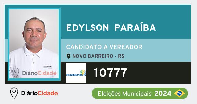 Edylson Paraíba é candidato a Vereador em Novo Barreiro (RS), pelo REPUBLICANOS, nas Eleições 2024