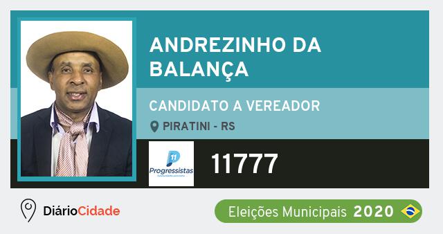 Candidato do PP para Vereador, Andrezinho da Balança obteve 141 votos e está como Suplente Vereador em Piratini nas Eleições 2020.