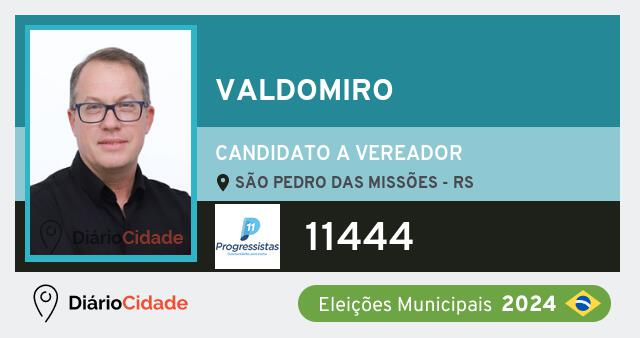 Valdomiro é candidato a Vereador em São Pedro das Missões-RS nas Eleições 2024 pelo PP (Progressistas). Natural de Palmeira das Missões - RS, Valdomiro dos Santos Vezaro tem 52 anos de idade.