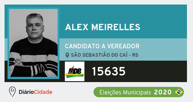 Candidato do MDB para Vereador, Alex Meirelles obteve 334 votos e está como Suplente Vereador em São Sebastião do Caí nas Eleições 2020.