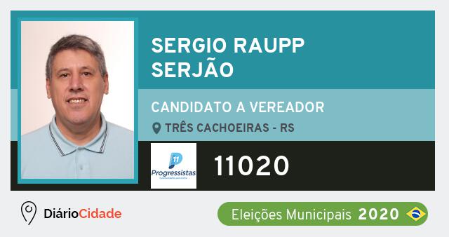 Candidato do PP para Vereador, Sergio Raupp Serjão obteve 301 votos e foi eleito Vereador em Três Cachoeiras nas Eleições 2020.