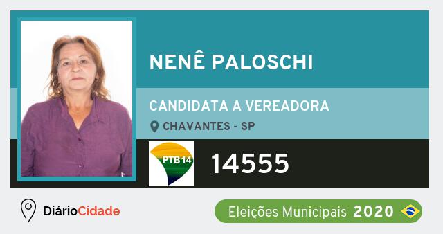 Candidata do PTB para Vereador, Nenê Paloschi obteve 6 votos e está como Suplente Vereador em Chavantes nas Eleições 2020.