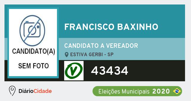 Candidato do PV para Vereador, Francisco Baxinho obteve 0 votos mas não foi eleito Vereador em Estiva Gerbi nas Eleições 2020.