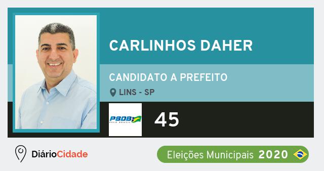 Candidato do PSDB para Prefeito, Carlinhos Daher obteve 2937 votos mas não foi eleito Prefeito em Lins nas Eleições 2020.