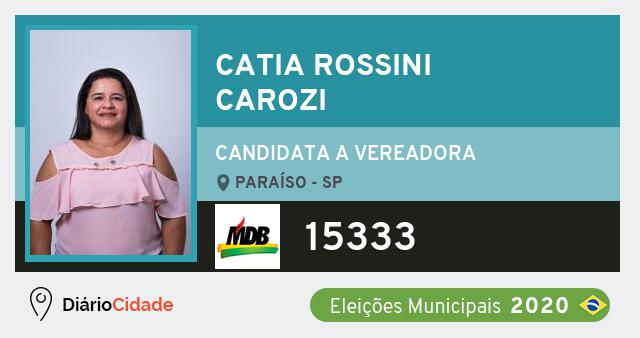Catia Rossini Carozi foi candidato a Vereador em Paraíso (SP) pelo MDB nas Eleições 2020
