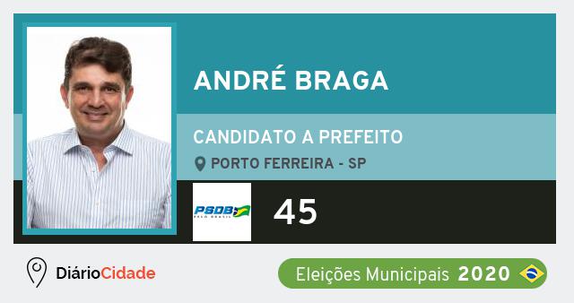 Candidato do PSDB para Prefeito, André Braga obteve 9316 votos mas não foi eleito Prefeito em Porto Ferreira nas Eleições 2020.