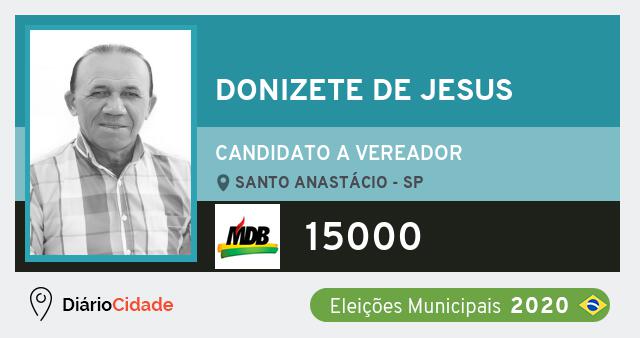 Candidato do MDB para Vereador, Donizete de Jesus obteve 72 votos mas não foi eleito Vereador em Santo Anastácio nas Eleições 2020.