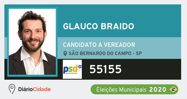 Candidato do PSD para Vereador, Glauco Braido obteve 2286 votos e foi eleito Vereador em São Bernardo do Campo nas Eleições 2020.