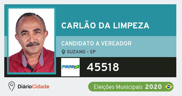 Candidato do PSDB para Vereador, Carlão da Limpeza obteve 1227 votos e está como Suplente Vereador em Suzano nas Eleições 2020.
