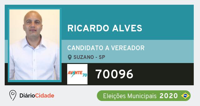 Candidato do AVANTE para Vereador, Ricardo Alves obteve 70 votos mas não foi eleito Vereador em Suzano nas Eleições 2020.