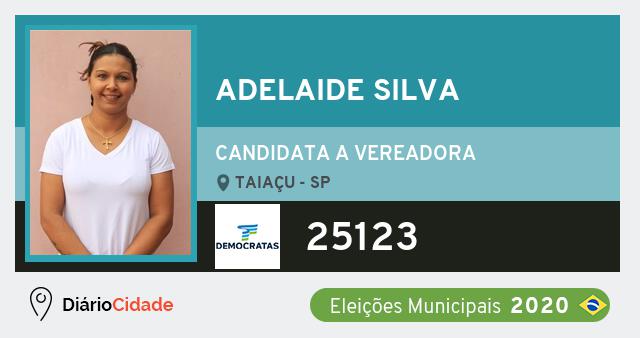 Candidata do DEM para Vereador, Adelaide Silva obteve 228 votos e foi eleito Vereador em Taiaçu nas Eleições 2020.