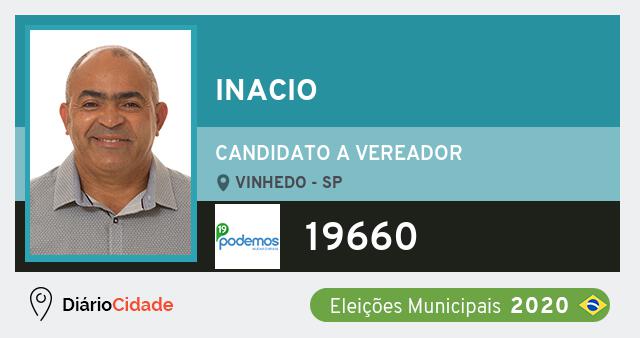 Candidato do PODE para Vereador, Inacio obteve 117 votos e está como Suplente Vereador em Vinhedo nas Eleições 2020.